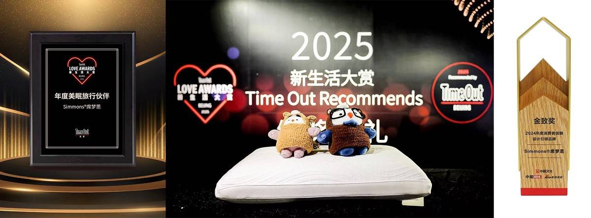 与此同时,Simmons席梦思对生活美学的探索与高品质承诺,也赢得了跨领域的权威背书。品牌不仅荣膺新浪家居金致奖 “2024年度消费者信赖设计引领品牌”,验证了其将睡眠产品升维为家居艺术品的突破性成就;更入选《Time Out》2025年度新生活大赏榜单并荣获“年度美眠旅行伙伴”,彰显了其在新消费时代,已成为定义品质生活方式的消费符号与安心之选。这两项殊荣,分别从专业设计力与大众消费风向的角度,共同印证了Simmons席梦思不仅提供睡眠,更在塑造当代生活美学与健康起居方式。