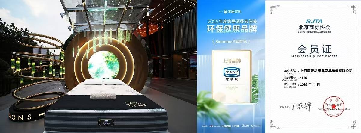 凭借从源头到终端的全链路绿色管理,以及携手艺术家将环保理念转化为可触摸的美学体验,Simmons席梦思让可持续真正融入用户生活。这一扎实的实践使其在权威的GOGREEN永续绿色盛典上,被授予“可持续生活方式先锋品牌”称号,同时,品牌也赢得了消费者的直接信赖,在基于大量用户调研与实测的2025第四届家居消费者口碑榜上,Simmons席梦思成功斩获“年度家居消费者信赖环保健康品牌”。2025年,品牌正式成为北京商标协会会员,系统性强化知识产权管理,构建规范的创新环境,为品牌与行业的可持续发展筑牢根基。