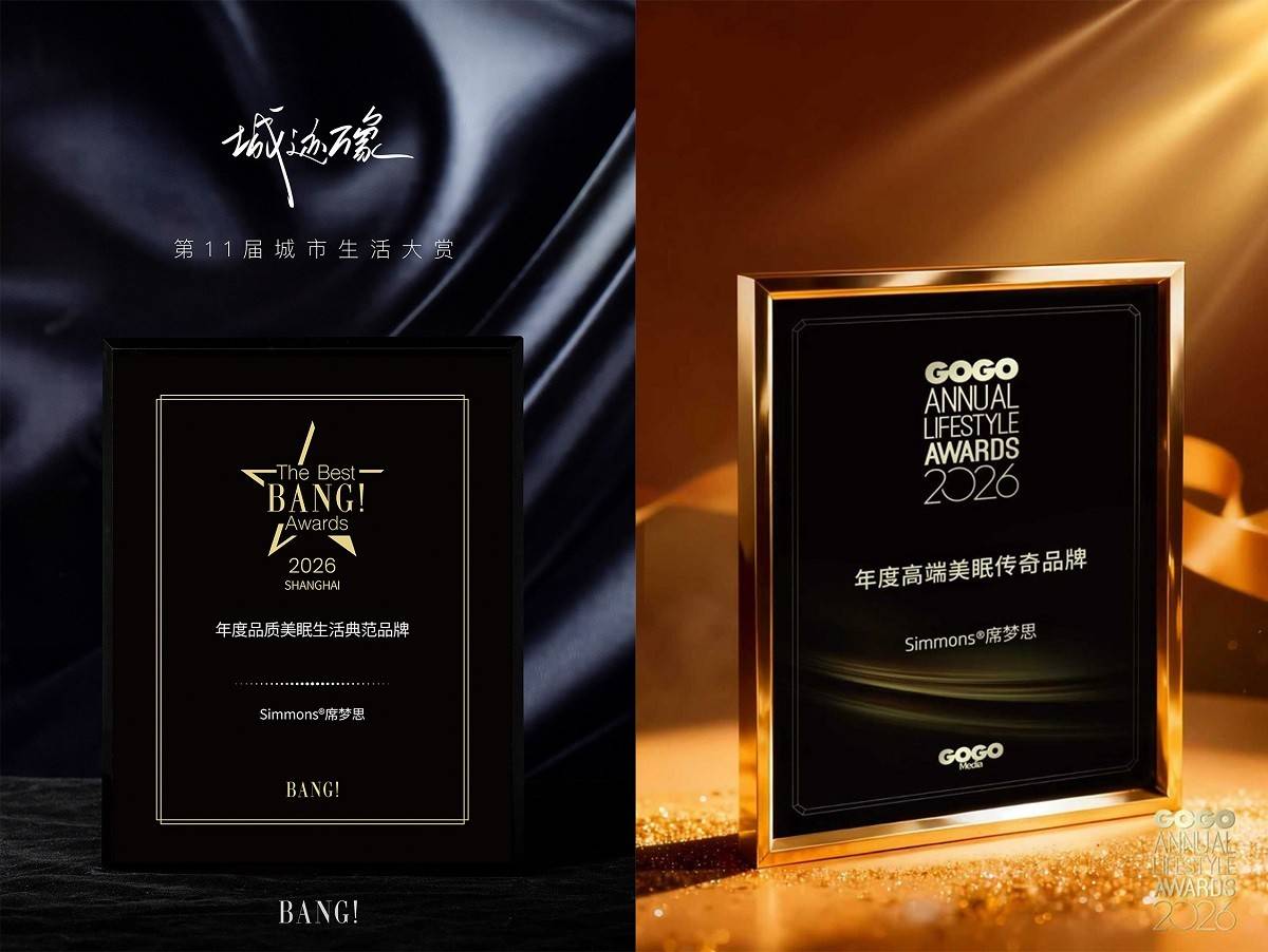 2025年正值Simmons席梦思旗下传奇产品系列“Beautyrest®甜梦系列”诞生100周年。品牌以“甜梦传绮”为主题,通过纪念产品、跨界合作与沉浸式体验,成功将百年工艺与现代需求相连,让“一夜甜梦”从概念变为可感知的舒适,并在多项评选中赢得认可。在聚焦都市品质生活的The Best BANG! Awards 2026 SHANGHAI评选中,品牌凭借将百年睡眠科技无缝融入当代精致生活的卓越实践,荣膺“年度品质美眠生活典范品牌”。与此同时,GOGO ANNUAL LIFESTYLE AWARDS 2026则将“2026年度高端美眠传奇品牌”的荣誉授予Simmons席梦思,其跨越世纪的创新活力再获肯定。